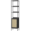 1 kép Vasagle 6 szintes könyvespolc, fém keret, Boho Rattan hatású ajtó, 30x40x175 cm, fekete