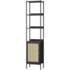 1 kép Vasagle 6 szintes könyvespolc, magas állópolc rattanszerű ajtóval, boho stílus, fekete