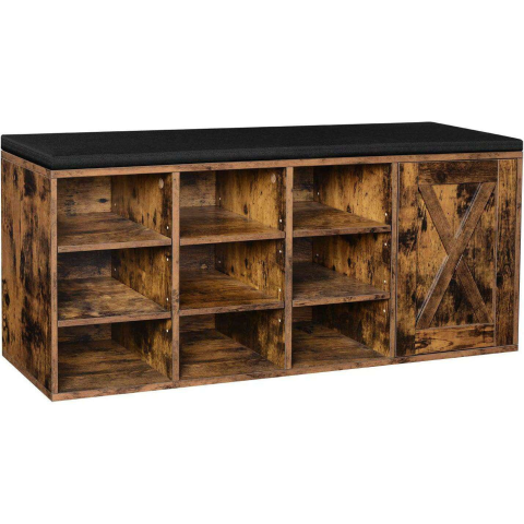 Vasagle Cipőpad, cipőtartó 9 nyitott rekesszel, párnázott, rusztikus barna bútor termékleírás