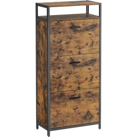 Vasagle Cipős szekrény 3 ajtós 15-18 pár cipő tárolására, rusztikus barna 60x30x130cm bútor termékleírás