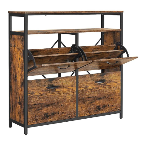 Vasagle Cipőszekrény, cipőtároló billenő ajtóval, rusztikus barna bútor termékleírás