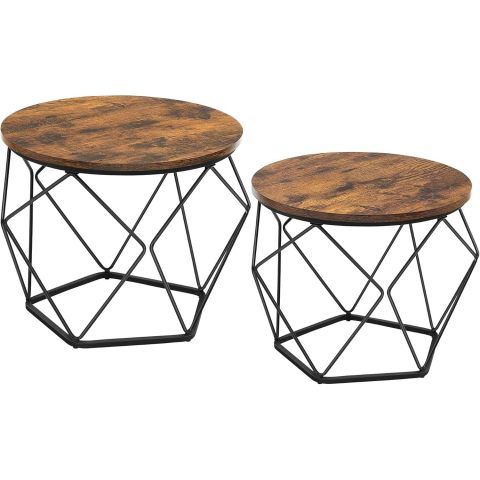 Vasagle Dohányzóasztal, 2 oldalsó asztal, Ø60cm és Ø50cm, barna-fekete bútor termékleírás