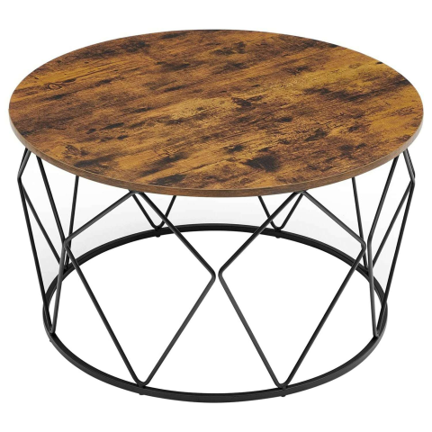 dohányzóasztal, kisasztal, nappali asztal, kanapé asztal, acél váz, nappaliba, hálószobába, dolgozószobába, ipari formatervezés, vintage barna-fekete:Szereti az egyedi megoldásokat? A gyémánt alakú keret és a rusztikus színű kerek asztallap vonzó megjelenést kölcsönöz a dohányzóasztalnak. Ez a kombináció örömet okoz vendégeinekSokoldalú tárolás: a levehető asztallap (átmérője 80 cm) egyben tálcaként is szolgál, ahol rágcsálnivalókat vagy italokat lehet