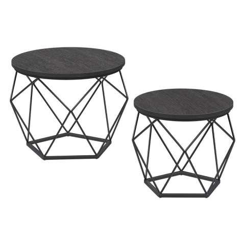 Vasagle Dohányzóasztalok, 2 oldalsó asztal, robusztus acél váz, fekete bútor termékleírás