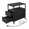 Vasagle Éjjeliszekrény elosztóval és USB porttal, kis asztal 2 fiókkal, antracitszürke
