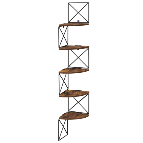 1 kép Vasagle Falra szerelhető sarokpolc, úszó polc 5 szintes, rusztikus barna és fekete