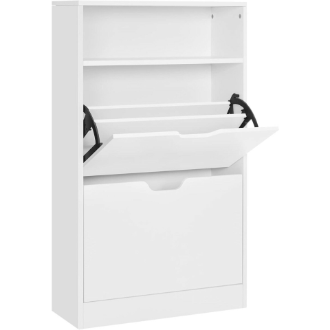 Teljes Vasagle Fehér Cipősszekrény 2 Rekesszel és Nyitott Polccal termékleírás