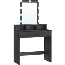 1 kép Vasagle Fésülködőasztal, sminkasztal tükörrel fiókokkal LED lámpákkal, fekete 80x40x145cm