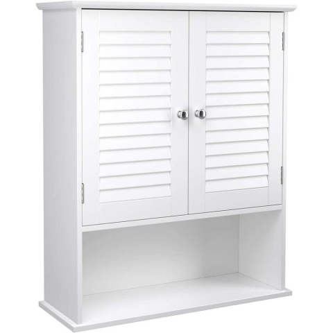 fali szekrény, függesztett fürdőszobai tárolószekrény, gyógyszeres szekrény állítható polccal, dupla redőnnyel és nyitott polccal, 60 x 20 x 70 cm