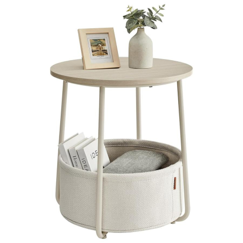 Teljes Vasagle Kerek asztal, kis dohányzóasztal szövetkosárral, krémfehér termékleírás