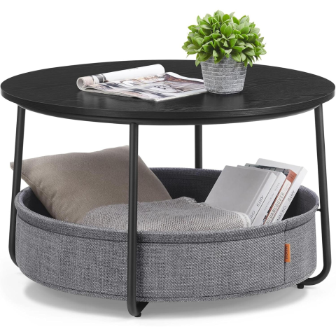 1 kép Vasagle kerek dohányzóasztal 75 cm átmérőjű, tintafekete-pala szürke