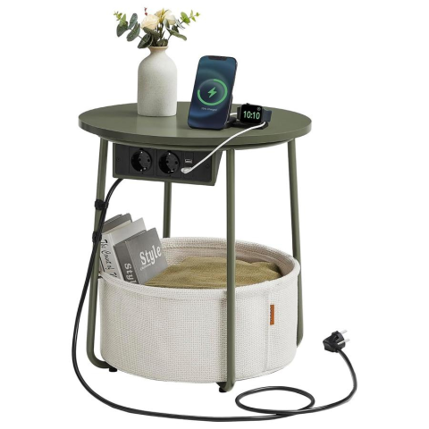 1 kép Vasagle Kerek dohányzóasztal USB töltő porttal, kis asztal aljzattal, erdőzöld és krémfehér