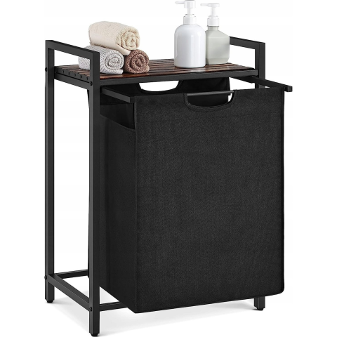 1 kép Vasagle Kihúzható Szennyeskosár, Polccal, Rusztikus Barna-fekete (BLH101B01 XXX)