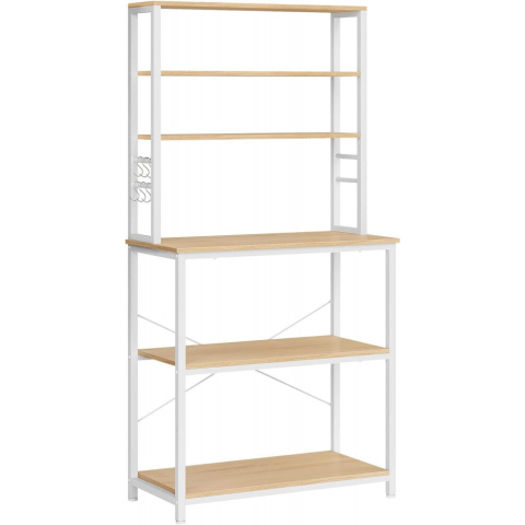 1 kép Vasagle Konyhai állópolc 6 polcszinttel, 6 akasztóval, tölgy és fehér 80x40x167cm