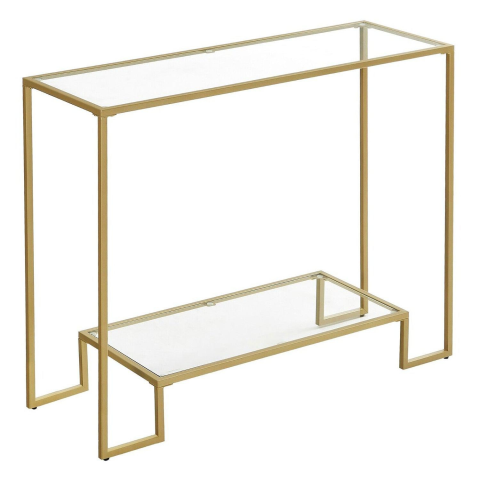 1 kép Vasagle Konzolasztal, acélkeretes asztal, edzett üvegpolccal, arany