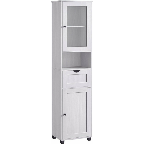 VASAGLE Magas Fürdőszoba Szekrény: Stílusos tárolás a fürdőszobádba 🛁 Ez a magas tároló szekrény tökéletes megoldás a fürdőszobai holmik rendszerezésére, miközben elegáns megjelenést kölcsönöz a térnek. A fehér és szürke famintázat modern és letisztu...