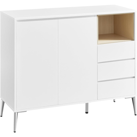 Teljes Vasagle Modern Fehér Tárolószekrény Állítható Polccal és Fiókokkal termékleírás