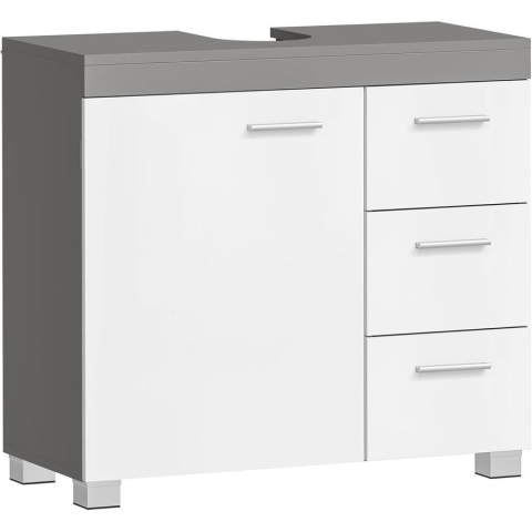 Mosdó alatti szekrény, fürdőszobai szekrény, 3 nagy fiókkal, 30 × 70 × 64 cm, fürdőszobaszekrény, 2 rekesszel az ajtó mögött, lábakkal ellátott fürdőszobai alsószekrény, felhőfehér–cement szürke Sok tárolóhely: 3 oldalsó, nagy fiók és 2 rekesz a szekrényajtó mögött – ez a mosdó alatti szekrény bőséges helyet kínál a fürdőszobai eszközök, törölközők és egyéb tárgyak rendezett tárolására. Állítható polc és praktikus fogantyúk: A szekrén