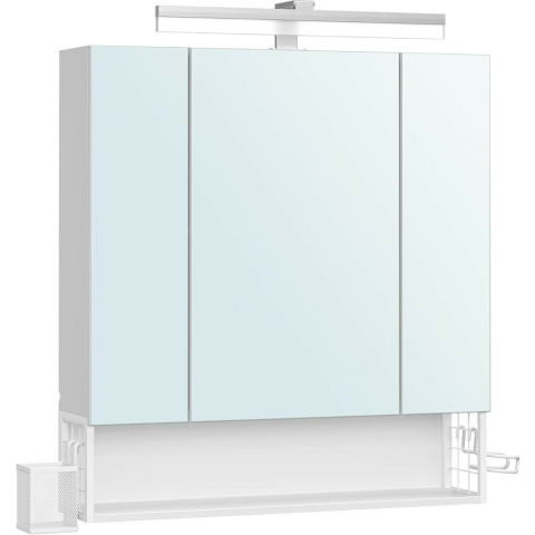 1 kép Vasagle Multifunkciós Tükrös Fürdőszobai Szekrény LED Világítással Felhőfehér