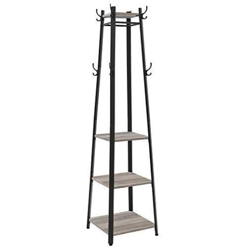 1 kép Vasagle Ruhaállvány, előszobafogas, ruhatartó 3 szintes polccal, szürke-bézs és fekete színben