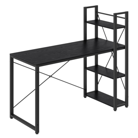 Számítógépes íróasztal, íróasztal tárolópolcokkal bal vagy jobb oldalon, 137,2 cm széles otthoni irodai íróasztal, tanuláshoz, könnyű összeszerelés, ipari stílusú, ébenfekete