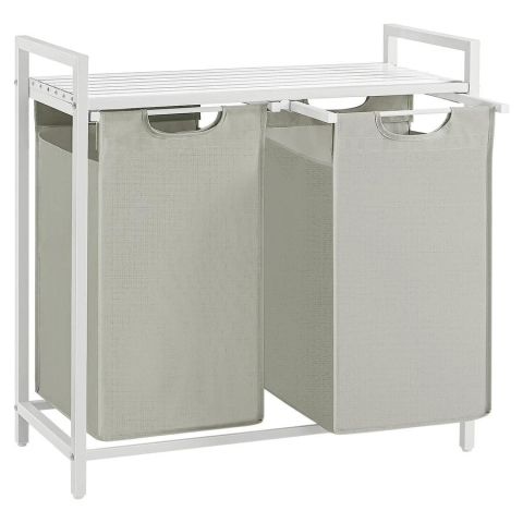 Teljes Vasagle Szennyeskosár 2 rekesszel, fém kerettel, fehér és szürke színben termékleírás