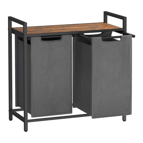 Teljes Vasagle Szennyeskosár, 2 rekeszes mosodai kosár, 2 x 46 liter, szürke termékleírás