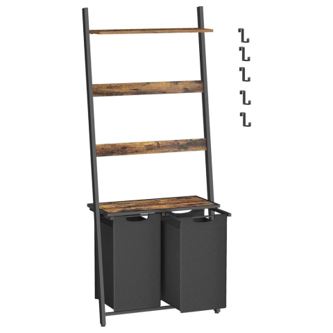 Vasagle Szennyeskosár, 2 részes szennyestartó létrapolccal, 2 x 46 literes, rusztikus barna bútor termékleírás