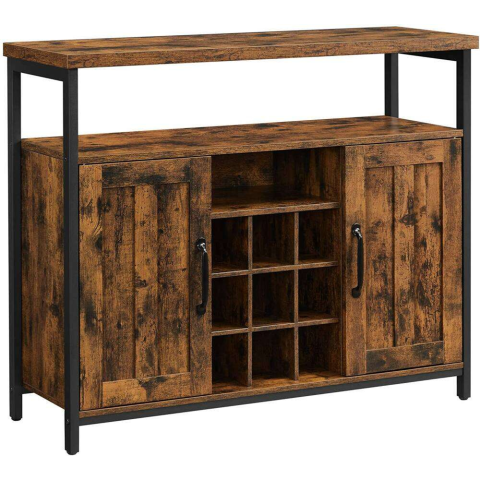 tárolószekrény, tálaló és büféasztal bortartóval, 2 ajtós szekrény étkezőbe, nappaliba, konyhába, 100 x 35 x 81,4 cm, ipari, rusztikus barna és feketeA menüben: 2 szekrény aperitif sütikhez, 9 üvegtartó ízletes borokhoz, 2 nyitott rekesz pohárhoz és végül ... 1 nagy felület tökéletes pizzák elhelyezéséhez és kiadós vacsora szervezéséhezMit kaphatunk? - Szeretném, ha egy rusztikus felület, gazdag barna kivitelben és ipari fekete acélvázzal, mindezt rácsos