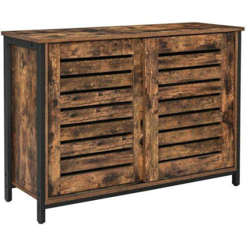 Vasagle Tálalószekrény, tolóajtós konyhaszekrény rusztikus barna és fekete bútor termékleírás