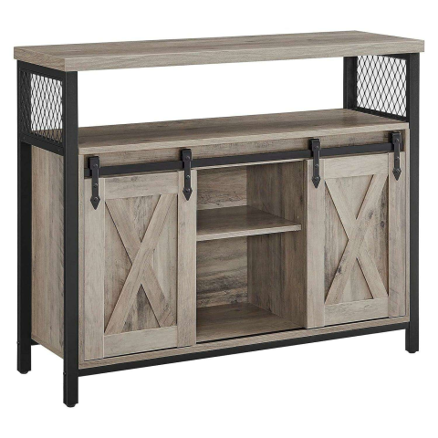 kredenc, konyhaszekrény, tároló szekrény, 2 tolóajtóval, 33 x 100 x 80 cm, állítható polcok, vidéki stílusú, nappaliba, szürke-feket