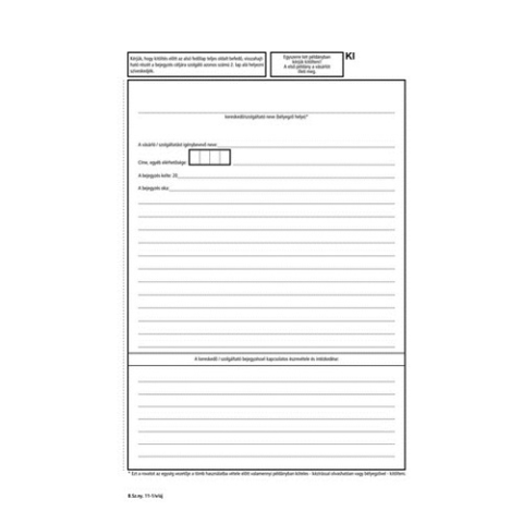 A/4 méretű, minőségi belívvel, karton fedlappal rendelkező nyomtatvány.