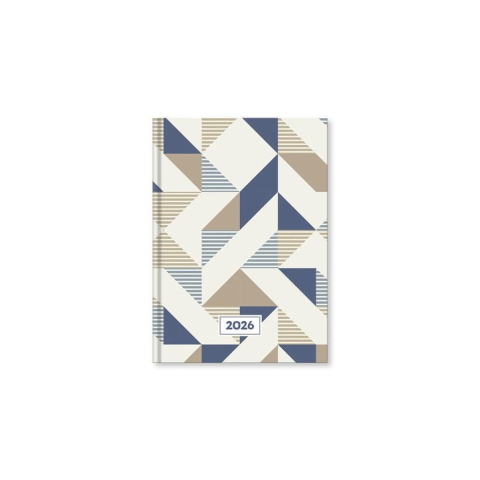Tervezd meg a napjaidat stílusosan ezzel az modern A/5 méretű 2026-os határidőnaplóval. A geometrikus mintájú borítót, letisztult háromszögek és csíkozott elemek díszítik bézs, sötétkék és barna árnyalatokban. A letisztult és trendi design elegáns megjelenítést biztosít, így tökéletes választás lehet irodai használatra, de akár ajándéknak is kiváló.