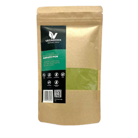 Vegadokk árpafű por 150 g Összetevők: 100% organikus búzafű (extra finom őrlésű). A búza friss hajtásából kíméletes szárítás után extra finomra őrölt gluténmentes por. A búzafű fogyasztása 5000 éves múltra tekint vissza. Könnyen emészthető fehérjébe