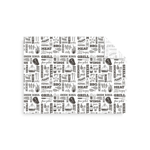 1000 db/karton 30*40 cm Bruttó súly / karton: 4,1 kg Összetétel: Biológiailag lebomló papír. FSC-minősítésű papírból készült, klórmentes. Gyártó: Vegware Grill tematikájú zsírpapírunk fenntartható forrásból származó, klórmentes papírból kész