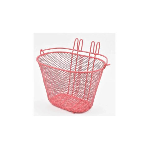 VeloGo első fém kosár gyerek kerékpárra, sűrű szövésű, kormányra akasztható, rózsaszín