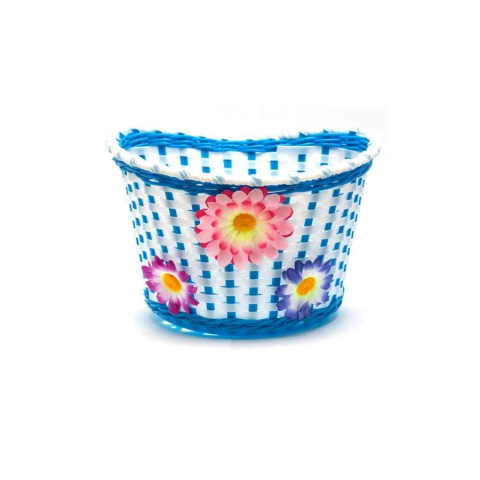 Velogo műanyag kosár gyerek kerékpárra, műanyag, virágos, kék-fehér
