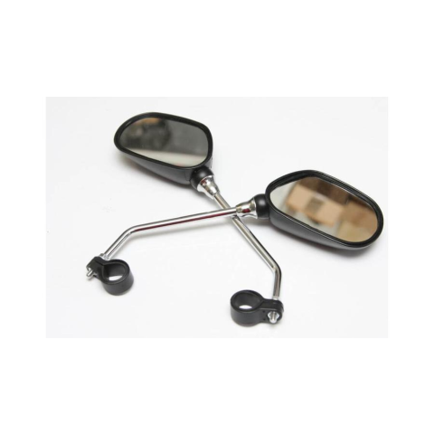 Kormányra rögzíthető, merev szárral ellátott közepes méretű visszapillantó tükör.