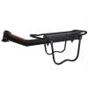 Nyeregcsőre szerelhető kerékpár csomagtartó.Oldaltartó korlátokkal,Mérete: 25,4-34,9mm, Terhelhetőség: max. 9kgAnyaga: alumínium cső, Csavaros rögzítés, Fényvisszaverő prizmával és csomagrögzítő gumival,Színe: Fekete