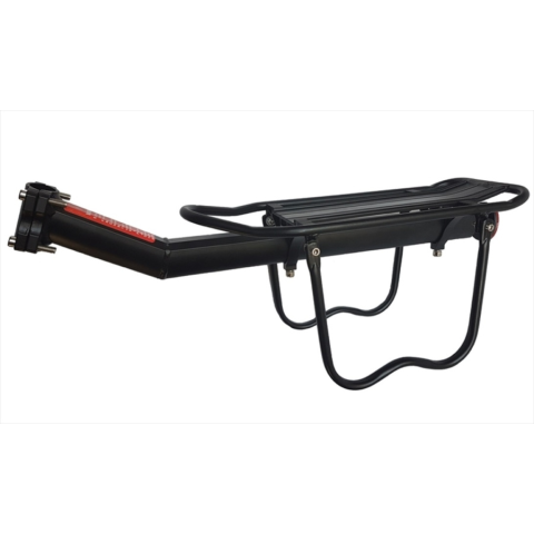 Nyeregcsőre szerelhető kerékpár csomagtartó.Oldaltartó korlátokkal,Mérete: 25,4-34,9mm, Terhelhetőség: max. 9kgAnyaga: alumínium cső, Csavaros rögzítés, Fényvisszaverő prizmával és csomagrögzítő gumival,Színe: Fekete