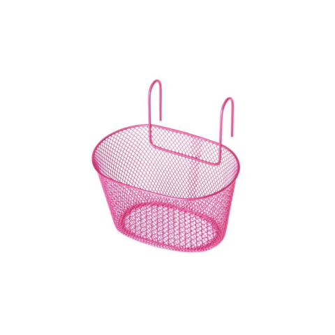 Velotech első fém kosár gyerek kerékpárra, sűrű szövésű, akasztós, rózsaszín