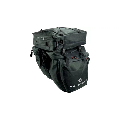 Velotech három részes túratáska hátsó csomagtartóra, lecsatolható felső résszel, 35L, fekete