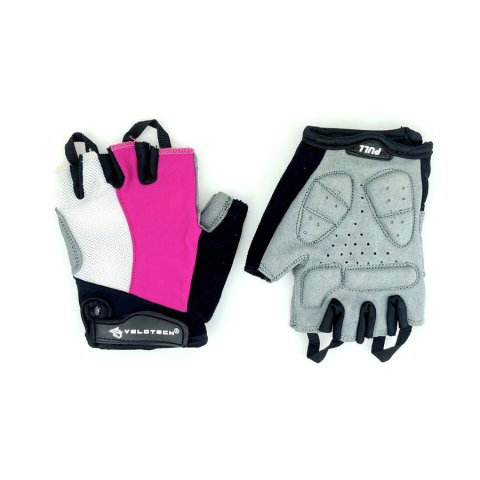 Velotech ujjatlan kerékpáros kesztyű, pink-fehér, gyerek 6 éves méret