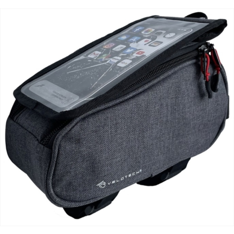1 részes telefontartós felsővázcső táska.A telefontartó tépőzárral kapcsolódik a táskához és teljesen levehető.Anyaga: 600D vízlepergető polyester.Szín: Sötét szürke,Tépőzáras rögzítés a könnyű fel és leszereléshez.Átlátszó PVC borítás a mobiltelefon használatához.Merevített falak és zippzáras záródás.Méret: 22 x 10,5 x 9,5 cmŰrtartalom:2,2 liter
