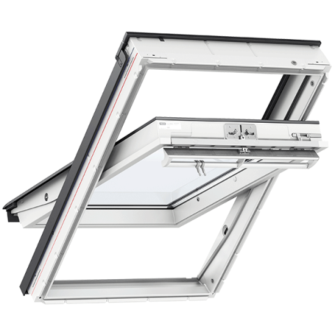 Prémium billenő tetőtéri ablak extra energiatakarékos üveggel. Könnyen nyitható, ergonomikus felső kilinccsel. Karbantartást nem igénylő, könnyen tisztítható, vízálló fehér felület hőkezelt fa magon. ThermoTechnology hőszigetelő rendszer, 3-rétegű üveg, könnyen tisztuló és harmatmentes bevonattal. Zárt állapotú szellőztetés. 15°-90° tetőbe. Ug=0,6/Uw=1,0W/m2K,Rw=37dB