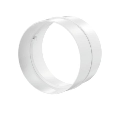 Fehér PVC-ből készült, befúváshoz és elszíváshoz használt légtechnikai elem. Műanyag kör csőtoldó, 125 mm kör légcsatornához.