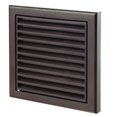 Műanyag szellőzőrács 100 mm-es csőcsatlakozóval - 154x154 mm - barna - rovarhálóval