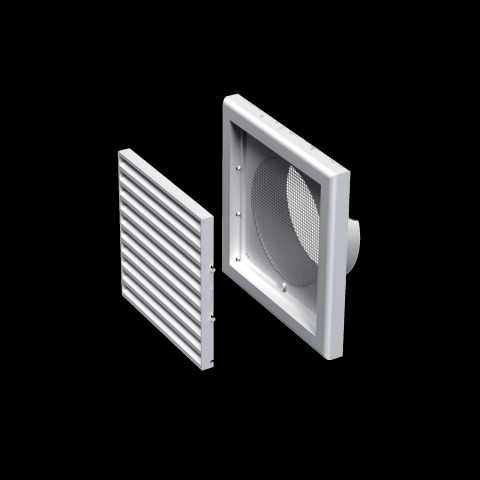 Műanyag szellőzőrács - 187x187 mm - fehér - rovarhálóval - 125 mm-es csőcsatlakozóval