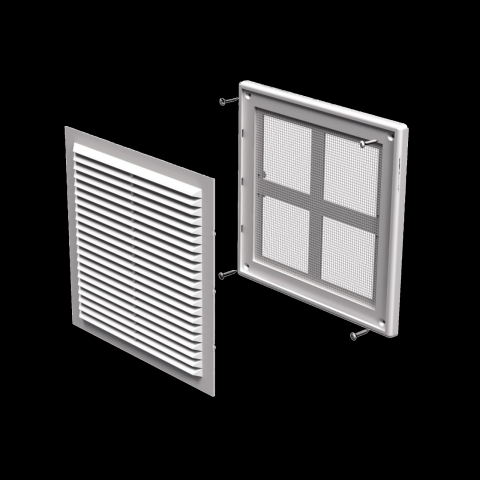 Műanyag szellőzőrács - 204x204 mm - fehér - rovarhálóval