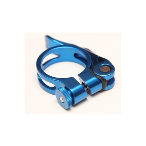 Venzo gyorszáras nyeregcső bilincs, Kék, 34,9 mm. Jó minőségű, és könnyű, mindössze 38 grammos, okos áttörésekkel könnyített, gyorszáras alu nyeregcső bilincs. 34,9 mm-es nyeregvázcsövekhez optimális. Tartós, UV álló, eloxált színek. Jól meghúzható, kényelmes gyorszárkar.